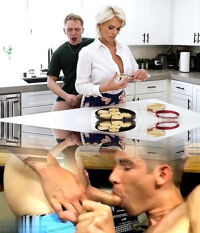 Taboo sex with a busty horny step-mom that the guy has not encountered in a while