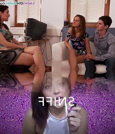 Femdom Hj CFNM MILFS in sexy lingerie fap cock in 3some
