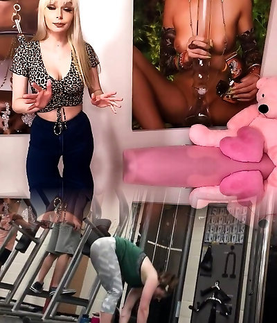 Perfect leggy Lady Dee takes various bizarre poses while massaging herself
