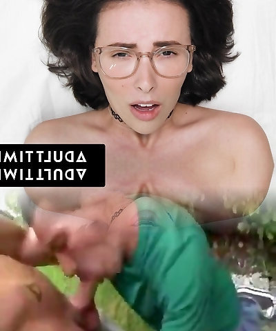 Nerdy chick with immense glasses and the pulsating boner