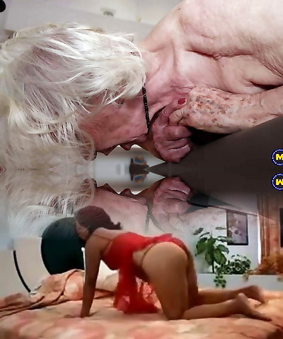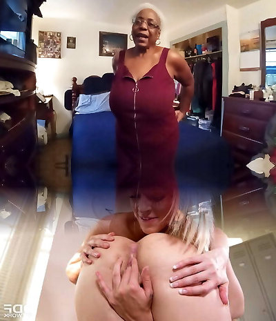 Grandma didn't expect BBW black joining her perverted session with a young stud