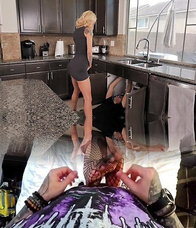 Inked housewife Sarah Jessie enjoys having sex with a plumber