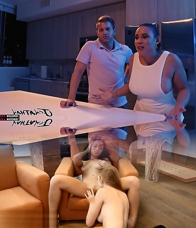 Naughty stepmom joins the teen couple for a three-way