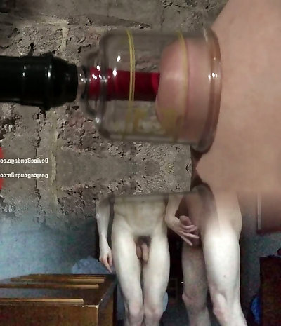 Slim pale and titless brunette is romped with fuck machine and mouth romped