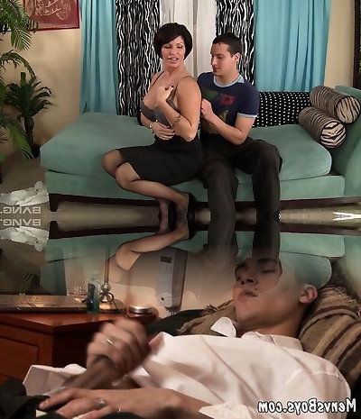 Son-in-law could not fight back and spunk on the masturbating mother-in-law
