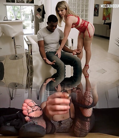 Dark-hued man enjoys receiving head from epic Cory Chase in lingerie