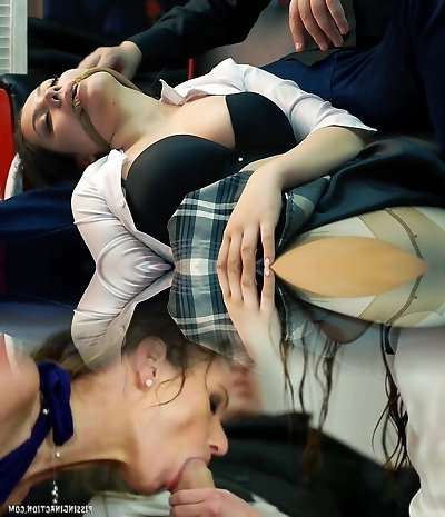 A Asian office chick with big boobs gets pounded in a bus