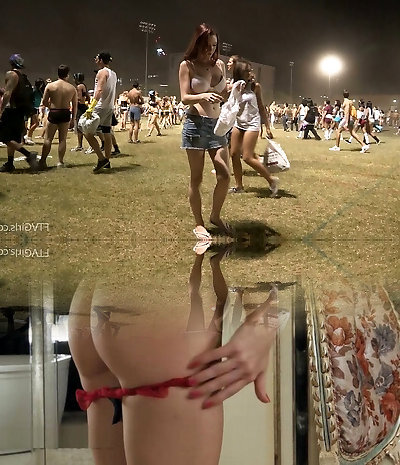 Hot Babe in a Thong and Topless in Public