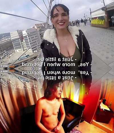 Curvy dark haired with fake tits in high stilettos licking massive balls lovely