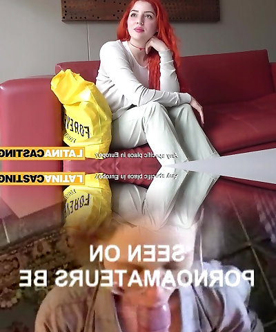 Cute Latina redhead facialized after strong fuck at the casting