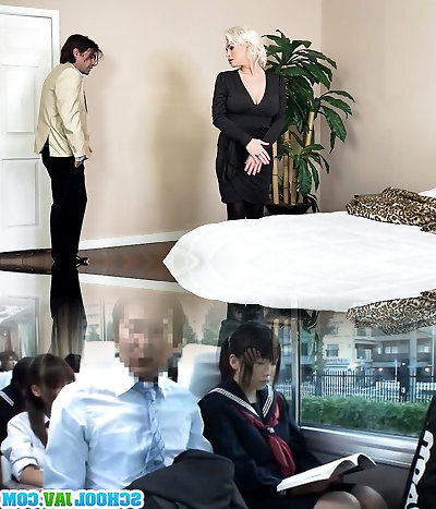 Towheaded tutor Bridgette B provides her colleague with titjob and blowjob