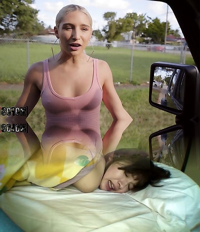 Diminutive tits blondie driver sneaks to the backseat