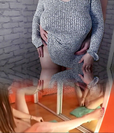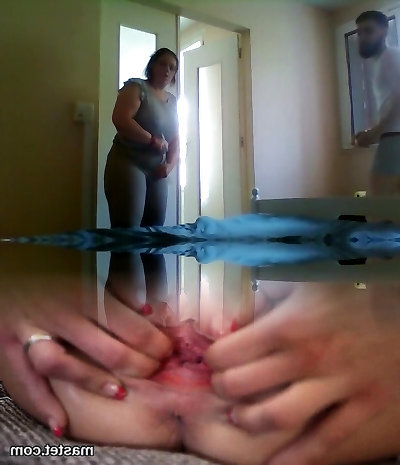Cuckold husband masturbate her small cock while enjoys own slutty wifes new pregnant belly and lactating boobs