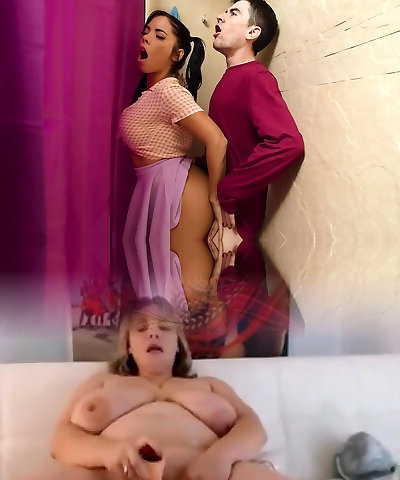 Stepson studies body of his very busty step-mummy, she is pretending nothing is happening