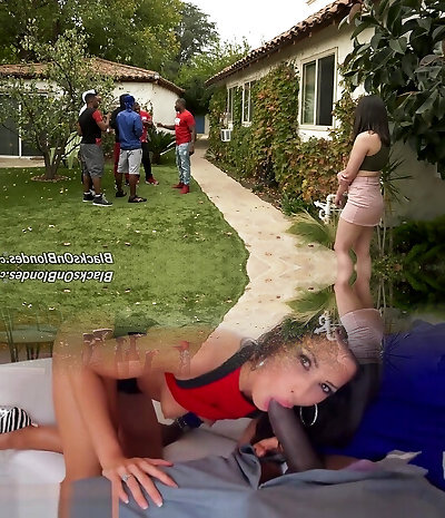 Fabulous milky blondie in bikini havingwild rough interracial gangbang