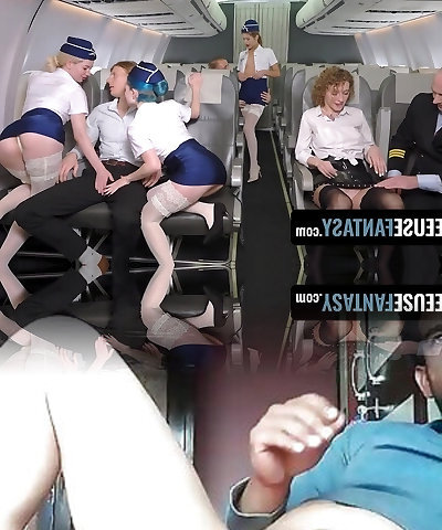 Unforgettable flight with spectacular stewardesses turned into a group sex