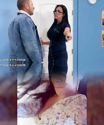 Small boobed brunette angel Jenna J Ross deep mouths teacher'c cock