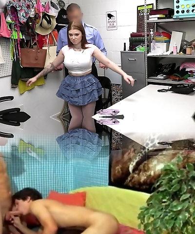 Round Huge-boobed Red-hair MILF Shoplifter Agrees To Get Boned By a Security Guy To Avoid the Arrest
