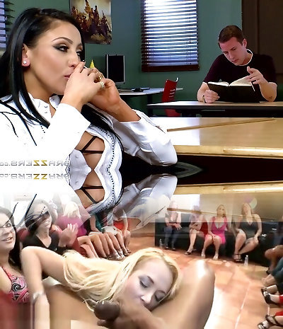 Zealous big-titted Chanel Preston wanna suck five strong and long BBCs