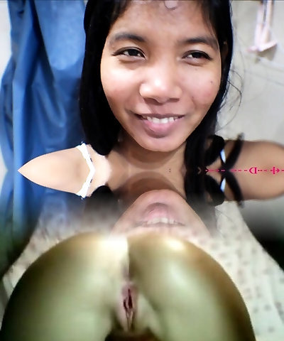 4'8'' 142cm Nine Month Pregnant Asian Milf getting rubbed all over with baby oil - Dual cam glance from below and in front