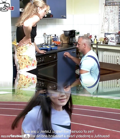 Chubby boy and his wife start to train their stepdaughter some sex techniques